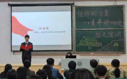 为引导同学学史明理、学史增信、学史崇德、学史力行,带领大家在党史学习中砥砺初心使命、汲取奋进力量,信息学院的党史学习教育大学生宣讲团继“红色李巷”首次宣讲之后,于4月28日下午,又在全体大一新生之中开展了“信仰的力量——青年讲‘四史’”宣讲活动。此次活动的开展贯彻落实了宣讲团“十个一”具体任务中的“进行一次演讲”的要求。