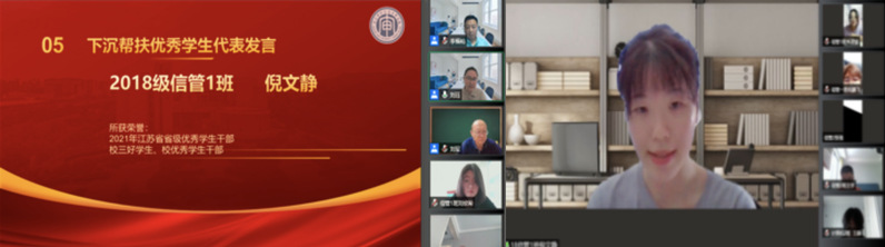2018级信管班倪文静同学,作为下沉指导一年级线上学习的高年级学生代表,分享了自己线上学习的经验。她表示线上学习是一种挑战,但作为信息技术领域的学生,也应作为一种常态,下沉指导的高年级同学一定会带领大家克服困难,尽快掌握线上学习的规律和方法,希望学弟学妹们能够意识到学习在大学中的重要性,努力学习,打造属于自己闪闪发光的大学生活。