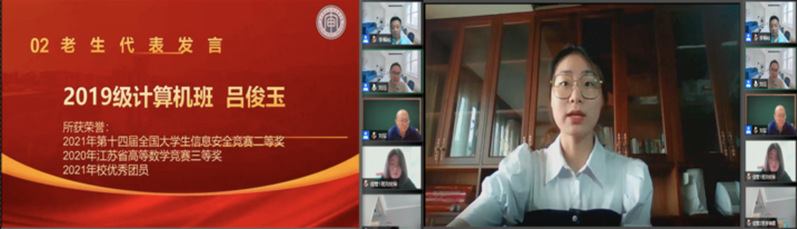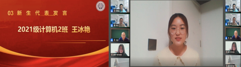 随后,信息学院高年级优秀学生代表和2021新生代表分别进行发言,分享了自己和大学相关的经验和感悟。