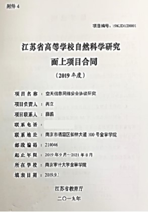 本次由芮立、刘军老师指导获得三等奖的毕业论文《基于空天信息网络的节点接入互信认证机制研究》课题,是基于上述两位教师2019江苏省高等学校自然科学研究面上项目《空天信息网络安全协议研究》(19KJD120001)的研究。