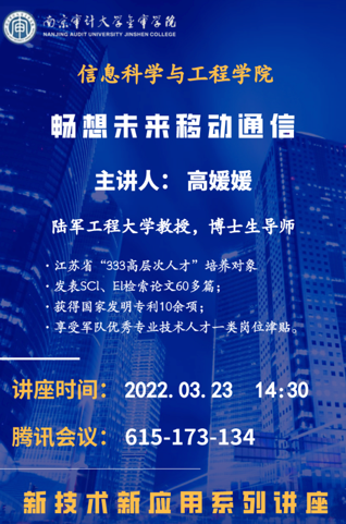 3月23日下午,信息学院邀请陆军工程大学教授,博士生导师高媛媛教授作了《畅享未来的移动通信》的学术讲座。信息学院全体师生参加了本次讲座。
