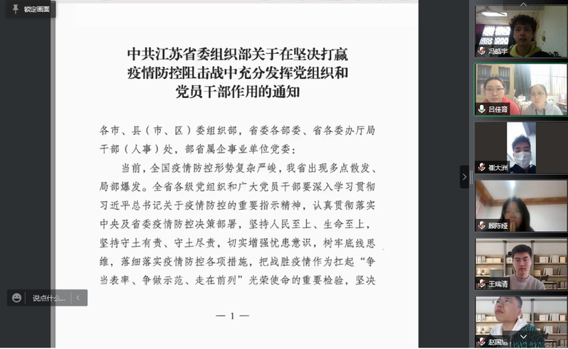 会上,石伟同志带领大家学习了《中共江苏省委组织部关于在坚决打赢疫情防控阻击战中充分发挥党组织和党员干部作用的通知》、《金审学院党委关于在坚决打赢疫情防控阻击战中充分发挥党组织和党员干部作用有关工作的通知》和《关于做好近期疫情防控工作的紧急通知》三个文件,对学生党员和入党积极分子积极参与学院组织的学生志愿服务队,在志愿服务中敢为人先,勇当先锋,敢打头阵的精神给予了充分的肯定,号召大家继续发挥先锋模范作用,团结带领全院同学抗击疫情,在疫情防控工作中践行初心使命。