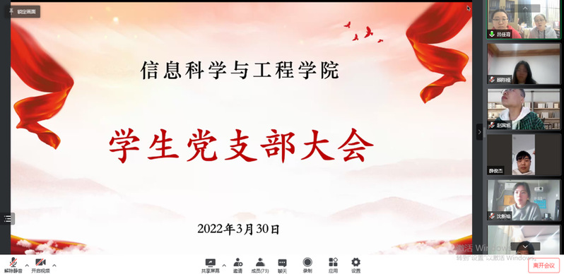 2022330日,信息学院召开了学生党支部大会。信息学院学生党支部书记石伟、分团委书记吕佳育、辅导员老师冯皓宇及全体学生党员、入党积极分子参加了本次大会。