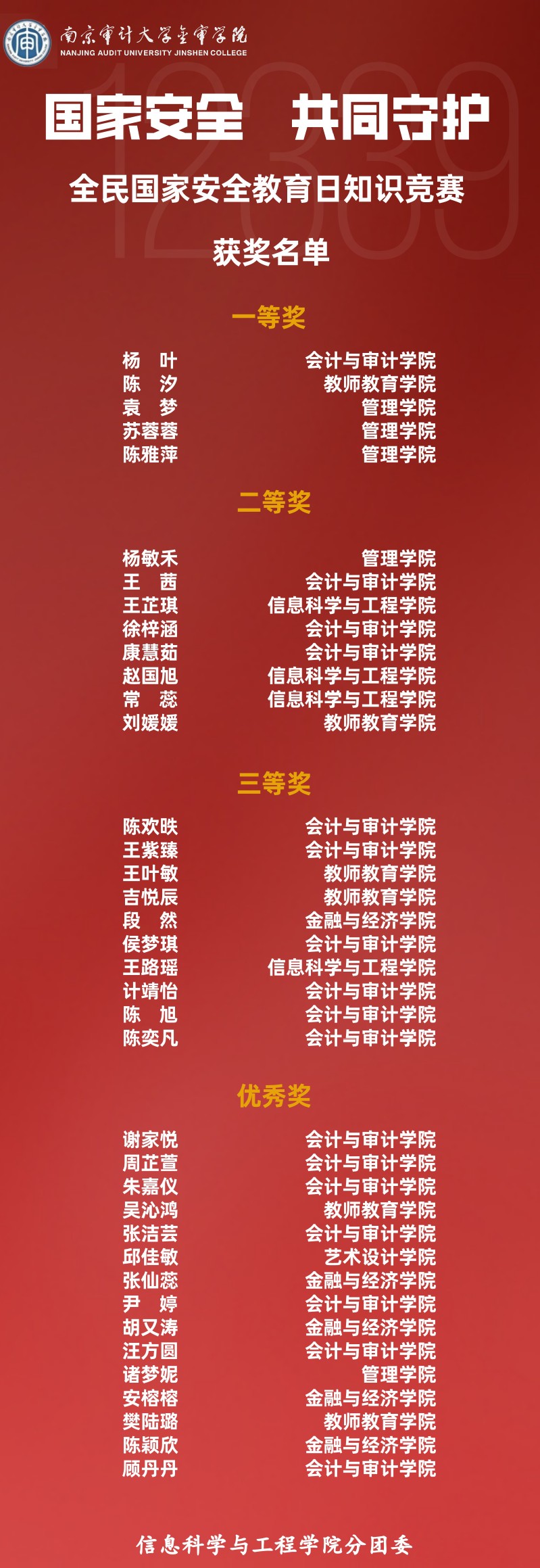 为普及国家安全知识,不断增强同学们的国家安全意识,有力筑牢国家安全人民防线,维护好国家安全和利益,信息学院分团委于4月10日至4月20日面向全校开展“国家安全,共同守护”国家安全知识线上答题竞赛活动。