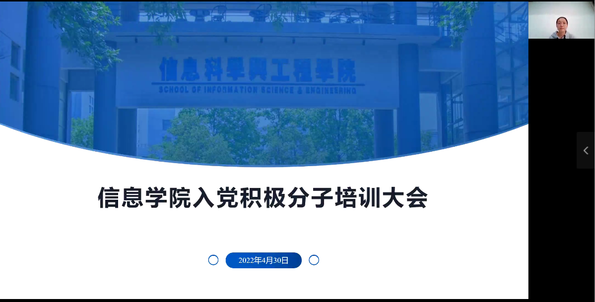 为进一步加深入党积极分子对党的认识,端正入党动机,提高思想政治觉悟,强化使命担当,WilliamHILL中国学生党支部于4月30日下午在线上召开了入党积极分子培训大会。信息学院全体辅导员老师以及本学期推优的入党积极分子参加本次会议,会议由学生党支部书记石伟老师主持。