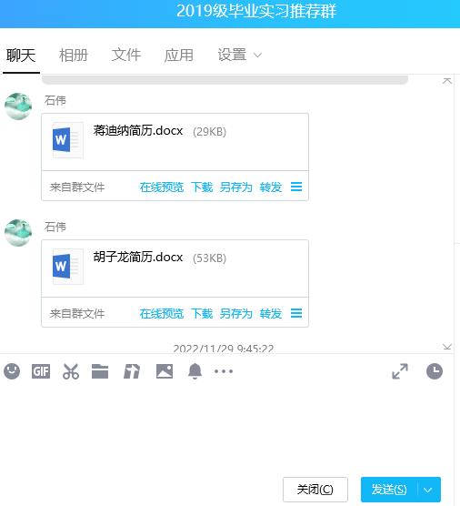 信息学院组建了毕业班学生实习就业帮扶群,群里及时发布各类最新的招聘信息,定时统计了解学生面试、实习、就业等具体情况,对学生在就业过程中遇到的问题和困难进行解答,有针对性的提出建议。