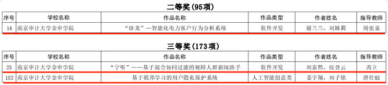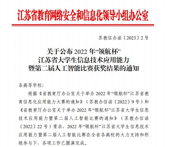 近日,由江苏省教育厅、江苏省高等教育技术研究会主办的2022年“领航杯”江苏省大学生信息技术应用能力比赛暨第二届人工智能大赛落下帷幕,在本次比赛中,共有123所院校700多项作品参赛,获奖319项,这其中,我院作品获得了1个二等奖、2个三等奖,共3个奖项。以一所财经类独立学院的内设二级学院达到全省123所参赛高校中1%的获奖率,为学校争得了荣誉。