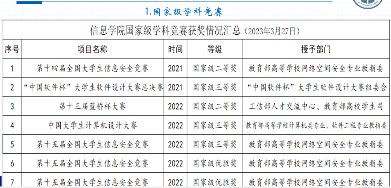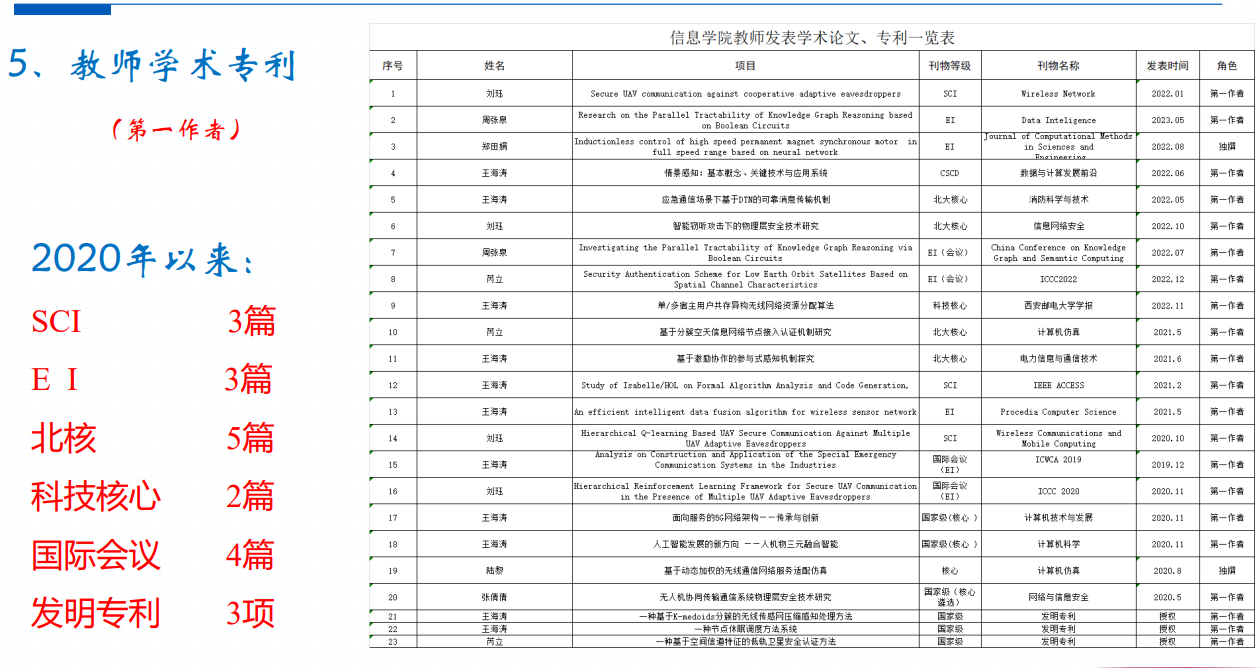 几年来,信息学院紧密围绕学校以转设为中心的发展战略,始终坚持主动发展,创新驱动,通过加强内外合作,努力构建优质资源平台,着力提高教育教学能力,在人才培养上取得了一系列突出的成绩:共获得国家级学科竞赛奖项7项,省级优秀毕业论文3项,学生考研国家线通过率达到了18%,升学率持续上升到近10%;师资队伍的专业发展和科研学术水平显著提升,2020年以来,以第一作者共发表SCI检索文章3篇,EI检索文章3篇,北大核心5篇,在国际会议上发表EI检索文章4篇,获得国家发明专利3项,获得全省高校自然科学基金项目3项(包括A类项目1项),平均每位教师都有核心文章发表,大部分教师都承担了自然科学课题。