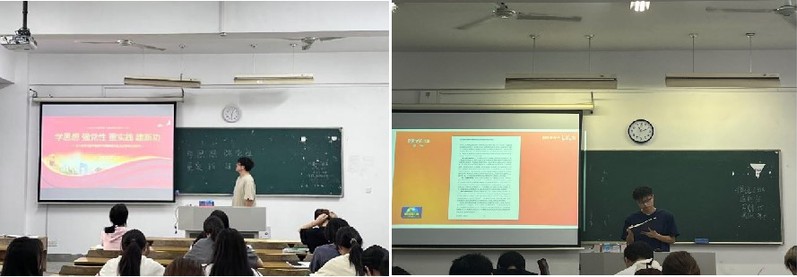 巡讲团成员、21级计算机专业姜天和信管专业沈子钦同学以“建设美丽中国”为主题,从形成背景、未来发展、建设意义等方面,为同学们深入讲解了建设美丽中国方针政策的重要意义,并向同学们提出了我们该做什么、怎样做的青年思考,让同学们从思考中进一步体悟当代青年的责任担当。