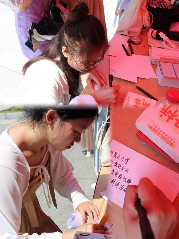 活动现场人头攒动,虽然酷暑难耐,但同学们的热情只增不减。23届毕业生以及其他年级的同学们积极参与其中,共同为毕业生送上温暖而美好的毕业寄语。参与活动的学生们依次有序地来到签名墙前,在上面留下自己的名字和祝福。这个简单而意义非凡的举动,却成为了他们最珍贵的回忆。同时,信息学院还为参与活动的学生们精心准备了小礼物,作为对他们积极参与的认可和回馈。每位学生都带着笑容接过自己的小礼物,感受到了母校的关怀和祝福。