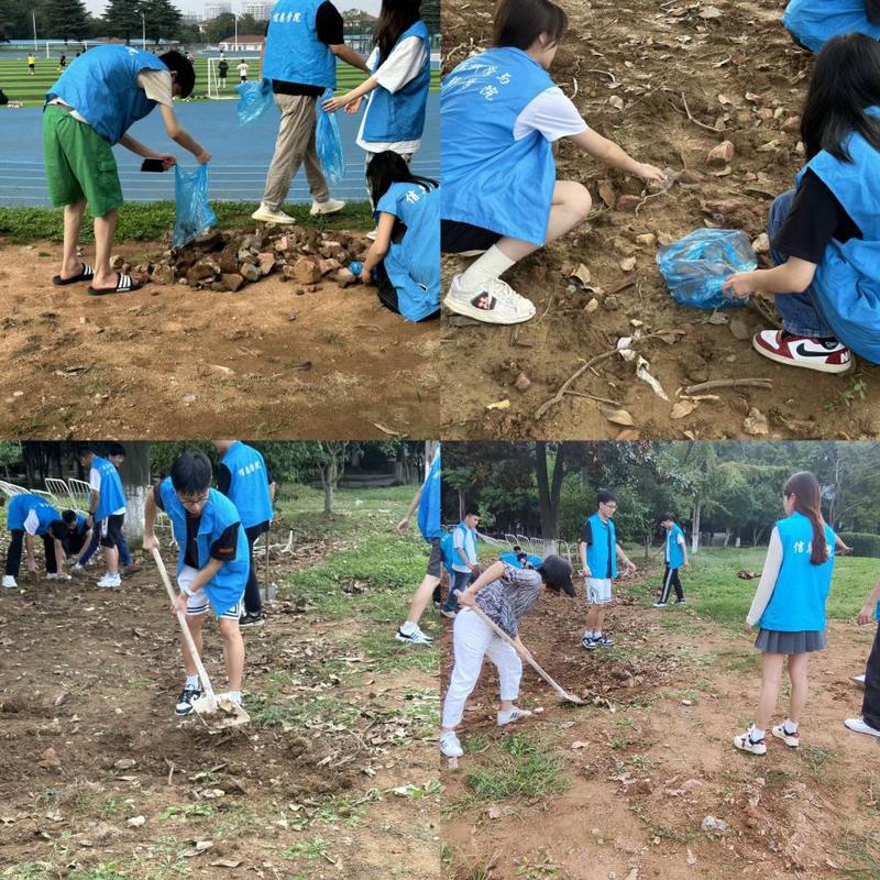 劳动“润”人,劳动育人。同学们自发分工,有条不紊,男生拿起铁锹铲土并搬运大块石子,女生则捡起地上的垃圾并将石子进行分类和规置。与此同时,老师们也纷纷加入到学生的行列中,和他们一起劳动,大家配合默契,不怕辛苦,高效地完成了任务。