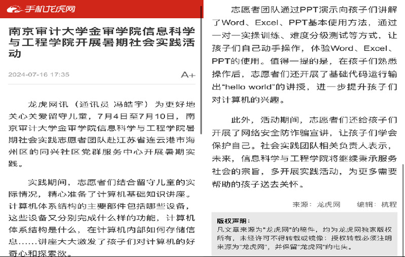 江苏要闻和龙虎网也分别发布了关于此次活动的报道。报道指出金审学院WilliamHILL中国秉承服务社会的宗旨,积极开展实践活动,为需要帮助的留守儿童送去关怀,树立了当代大学生的良好形象。