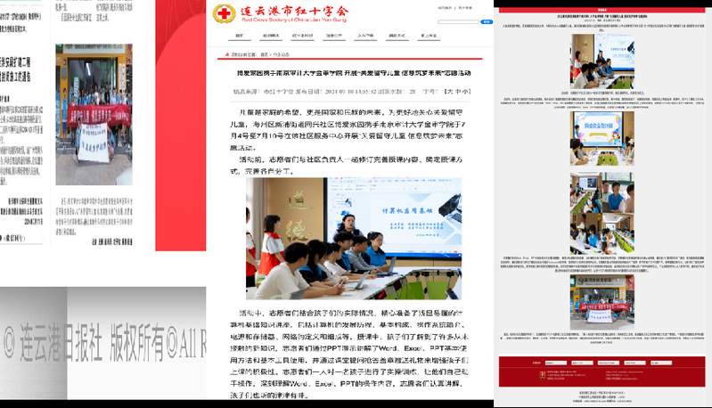 连云港日报刊登了关于此次活动的报道,文章赞扬了志愿者不辞辛苦,深入基层,为社区留守儿童带来了实实在在的帮助和温暖。江苏省红十字会和连云港红十字会也分别通过其官方网站和微信公众号,对学院志愿者们在活动中的出色表现进行了详细报道