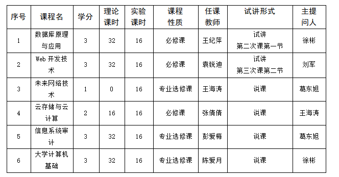 四、试讲课程及教师