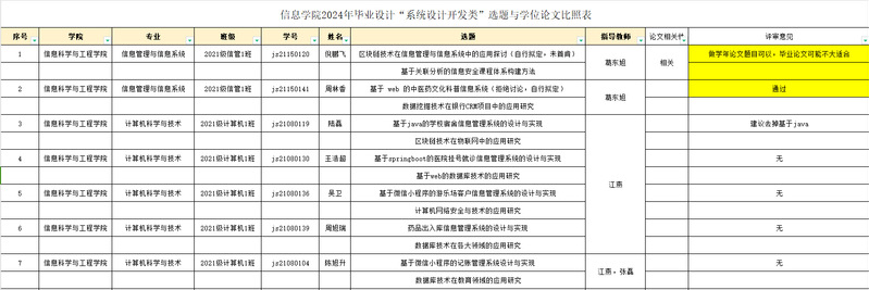 会议重点研究了《信息学院2024年毕业设计“系统设计开发类”选题与学位论文比照表》,通过集中性审核选题,确保选题的规范性、科学性、创新性和实用性。
