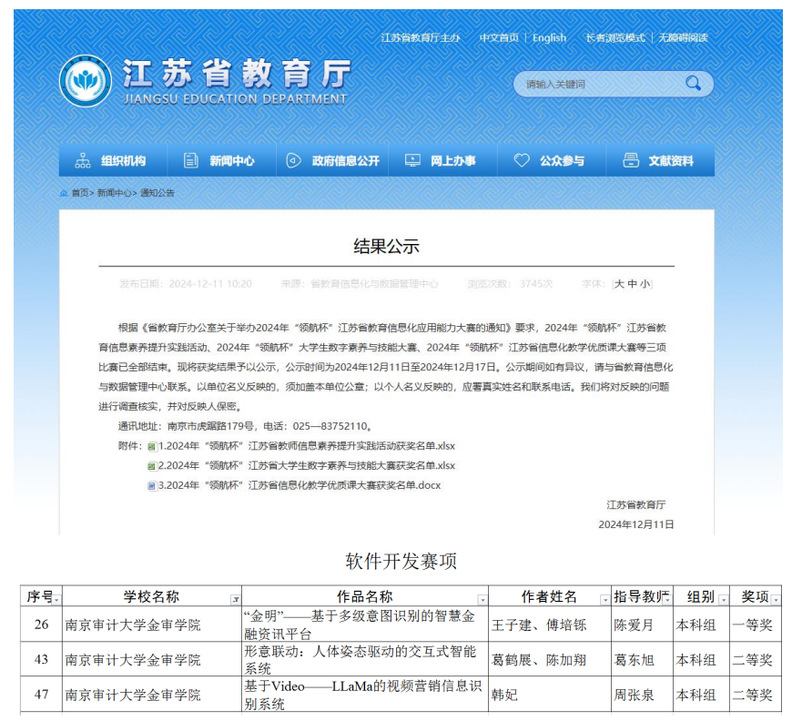 近年来,省教育厅等部门高度重视数字素养培育工作,坚持培训、赛事两手抓,初步构建了常态化、多层次、广覆盖的数字素养培育体系。特别是倾力打造的“领航杯”教育信息化应用能力大赛,已成为江苏教育信息化工作的亮丽名片。本次“领航杯”软件开发赛项共有80所高校参赛,75件作品获奖。信息学院的获奖成绩居于各参赛队伍的头部方阵。