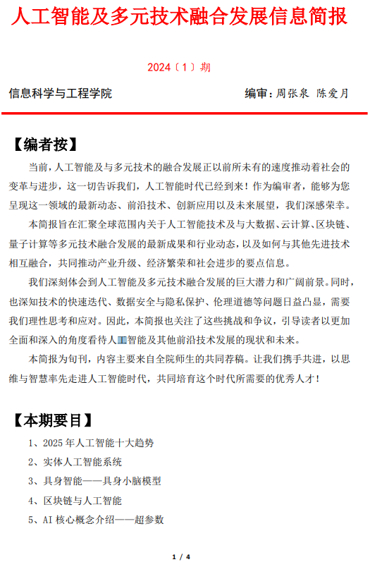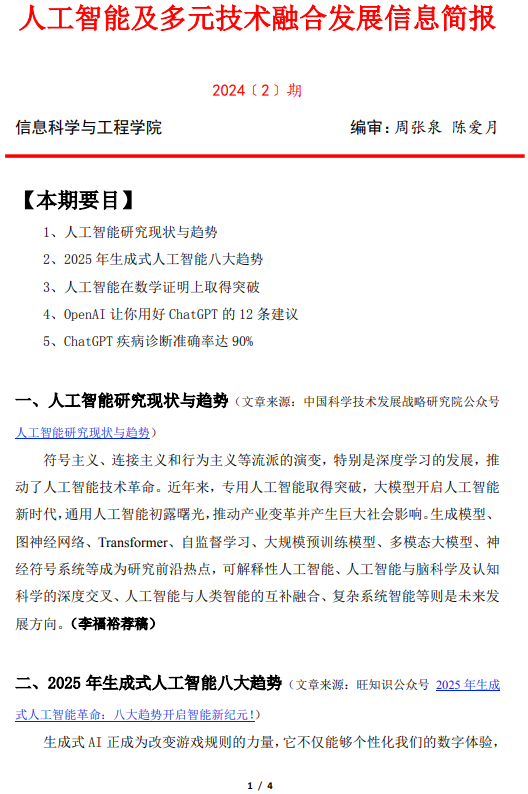 在加强内涵建设的同时,学院积极打造良好的学术环境。今年开始每旬定期编发《人工智能信息简报》,及时传递行业最新动态和技术进展;在每月的“新技术新应用系列讲座”中,重点介绍人工智能的最新发展与应用,不断拓宽师生的学术专业视野。