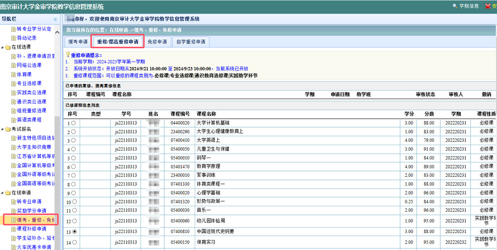2.2021、2022、2023级注销课程按规定选择组班或跟班重修进行,本学期未开课程可申请自学重修。