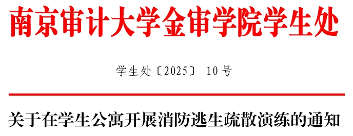 为贯彻落实《省教育厅关于开展全省高校春季安全检查的通知》(苏教安函〔2025〕2号)等文件精神,切实提高广大师生消防安全意识、应急处置能力和逃生疏散能力,定于3月19日组织8号公寓楼学生开展消防逃生疏散演练。现将相关工作布置如下: