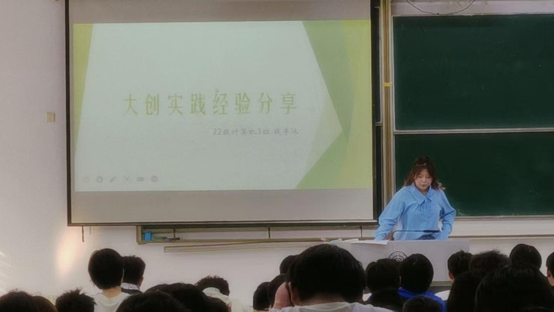 随后,大创省级项目负责人、2022级计算机专业钱芋冰同学进行了项目申报经验分享。钱芋冰同学持有实用新型专利一项和外观设计专利一项,参与发表三篇论文,是学院学生创新实践的典型。她从大学生创新创业的训练的重要意义以及她所在项目的经验分享两方面进行阐述,为在座的大学生的相关疑惑进行了有效解答。