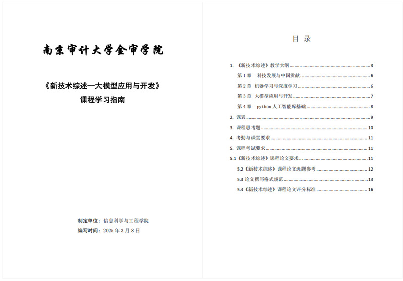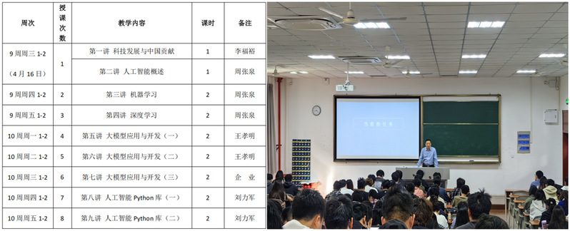 本次《大模型应用与开发》课程立足人工智能蓬勃发展的当下,共16个学时,课程从科学发展史引入,主要讲解机器学习、深度学习、人工智能python 基础库,以及大模型应用与开发等核心内容,使学生更好地了解当前科学技术热点和发展方向,为接下来的就业和发展做准备。