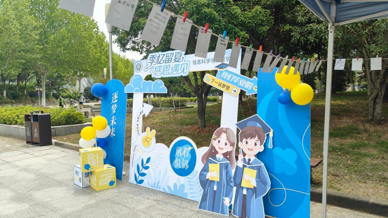 现场活动形式丰富,既有趣味的互动游戏,也有温馨的回忆分享。在游戏区域,毕业生们踊跃参与,释放欢乐与活力;在回忆分享区,大家纷纷驻足,分享着大学里的难忘瞬间,现场氛围温馨而热烈。
