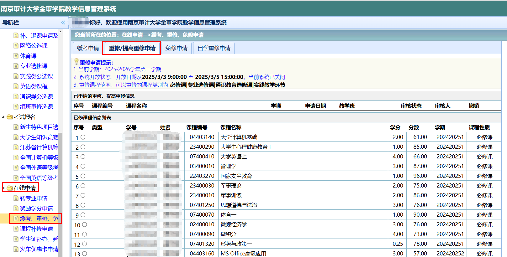 3.教务处依据重修课程已缴费的名单,编排本学期组班重修课程表并在教务系统公布,请密切关注。