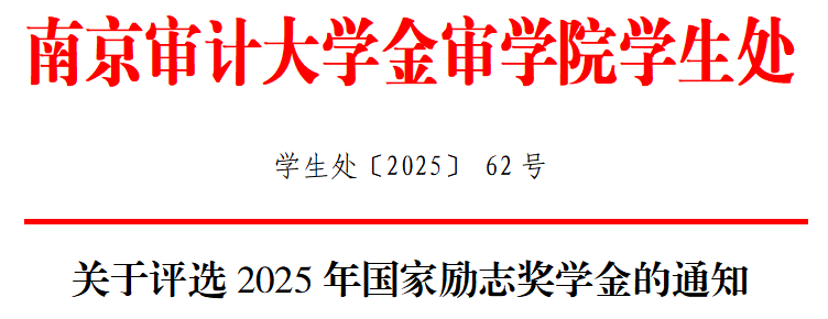 根据《省教育厅关于做好2025年普通高校国家奖学金国家励志奖学金有关工作的通知》(苏教助函〔2025〕5 号)和《williamhill威廉希尔国家励志奖学金评审实施细则》的相关精神,现就我校2025年国家励志奖学金评选工作通知如下: