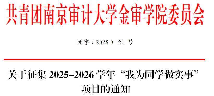 为深入学习贯彻习近平总书记关于青年工作的重要思想,支持和引导学生会组织更好地服务青年学生成长成才,不断提升学生会组织的同学满意度、大局贡献度和社会认可度,现面向全校各级学生会组织征集2025-2026学年“我为同学做实事”项目,聚焦解决同学们在学习生活中遇到的实际问题,切实提升学生会服务同学的能力和水平。有关事项通知如下: