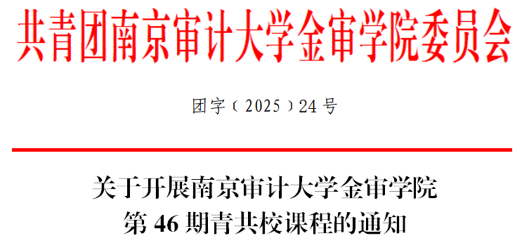 根据《中国共产党发展党员工作细则》《共青团推优入党工作实施办法(试行)》有关文件精神,结合《williamhill威廉希尔发展党员工作细则》(南审金审党〔2025〕20号)要求,决定开展第46期青共校课程,现将有关事项通知如下: