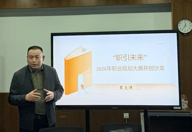 会上,常大清老师结合往届学生在省级职业生涯规划大赛中的获奖案例,系统分享了优秀职业规划的成长路径。他详细拆解了获奖同学从低年级开始明确职业定位、积累项目经历、打磨展示材料的全过程,并指出成功规划往往具备三个共性:清晰的自我认知、与专业紧密结合的路径设计,以及持续迭代的执行力。为在场师生提供了直观、可借鉴的经验。